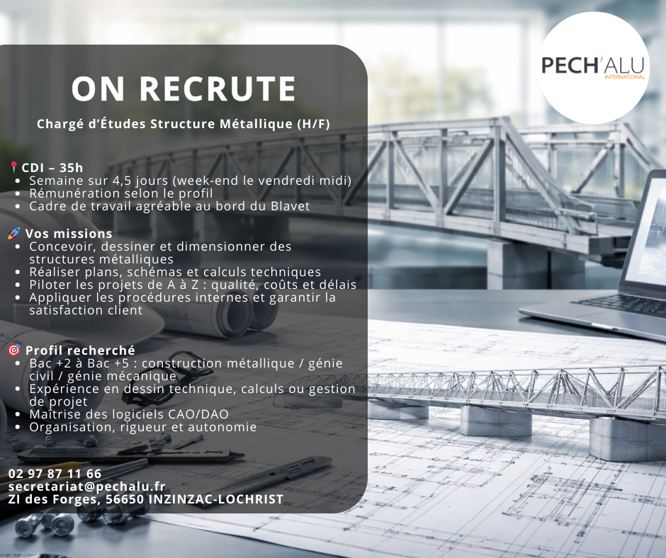 • Expérience : Une expérience solide en dessin technique, calculs, ou gestion de projets idéalement dans la construction métallique.