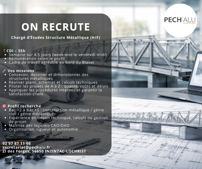 Nous recherchons un Chargé d’Etudes Structure Métallique (H/F) prêt(e) à relever des défis au sein d’une équipe innovante et en pleine croissance. Si tu veux faire la différence et travailler sur des projets de grande envergure, continue à lire…