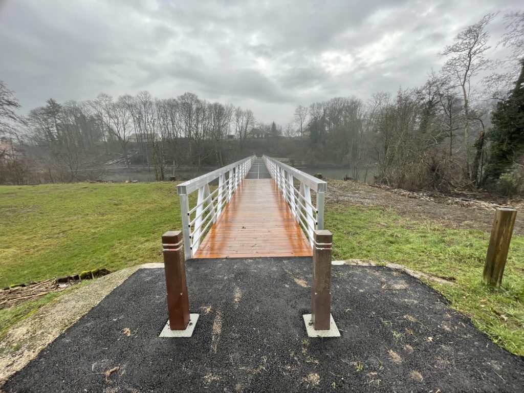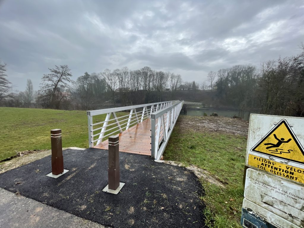 Cette belle passerelle de 25 m x 2 m en 1 travée installée à Chemilly se compose d’une structure en aluminium.