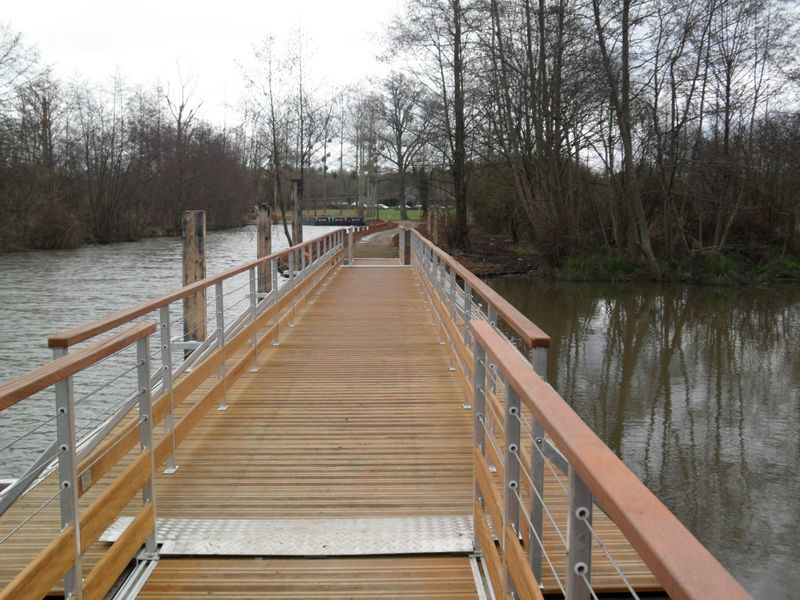 Passerelle flottante en aluminium équipée de flotteurs roto moulés en PEHD.